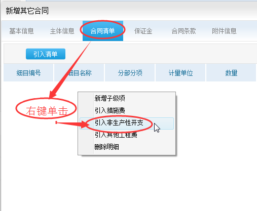 2、目标预算如果采取直接导出导入的方法的,单价为预算综合单价,后面的措施费、工程其他费和非生产性开支这几个模块录入数据后不要选择分摊部位