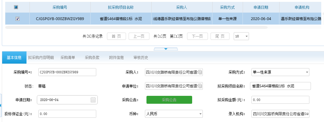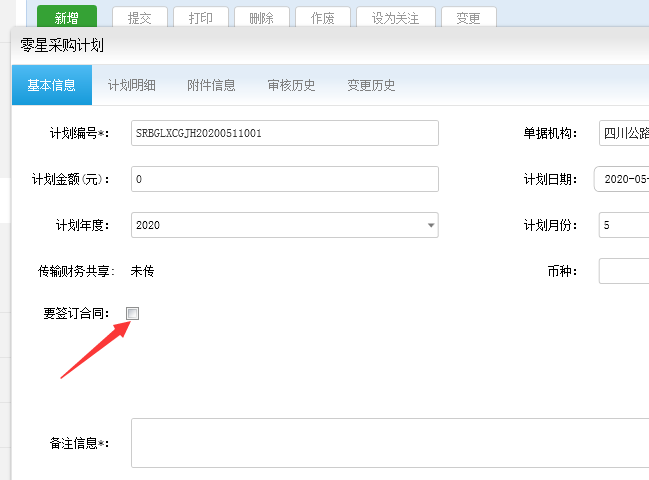 录入合同相关信息,这里需要强调一下的是“附件信息”这个地方,里面要求上传的是 还未经批准(没有签字,没有盖章)的草稿,录入完成后,提交,走审核流程;