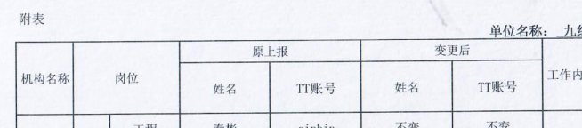 《权限变更表》 样式(局部)