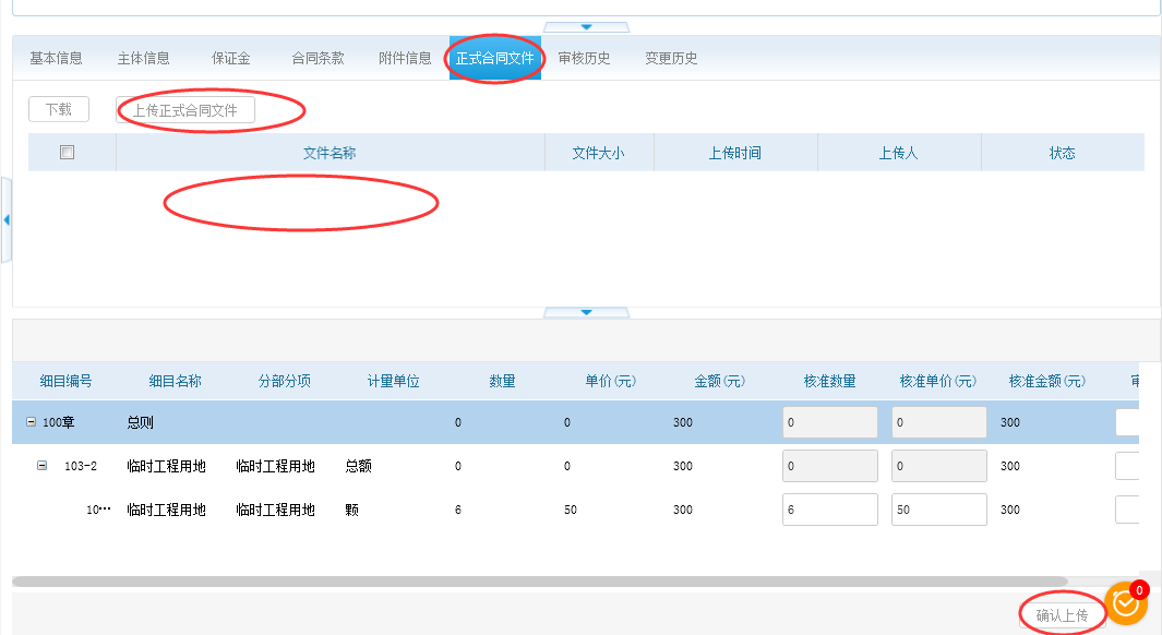 上传正式合同文件的操作和说明