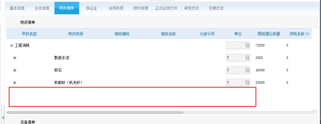 项目工程上做了甲供清单,但设备结算的时候,运行记录的消耗类型却选不了甲供,只有分包扣款这个选项